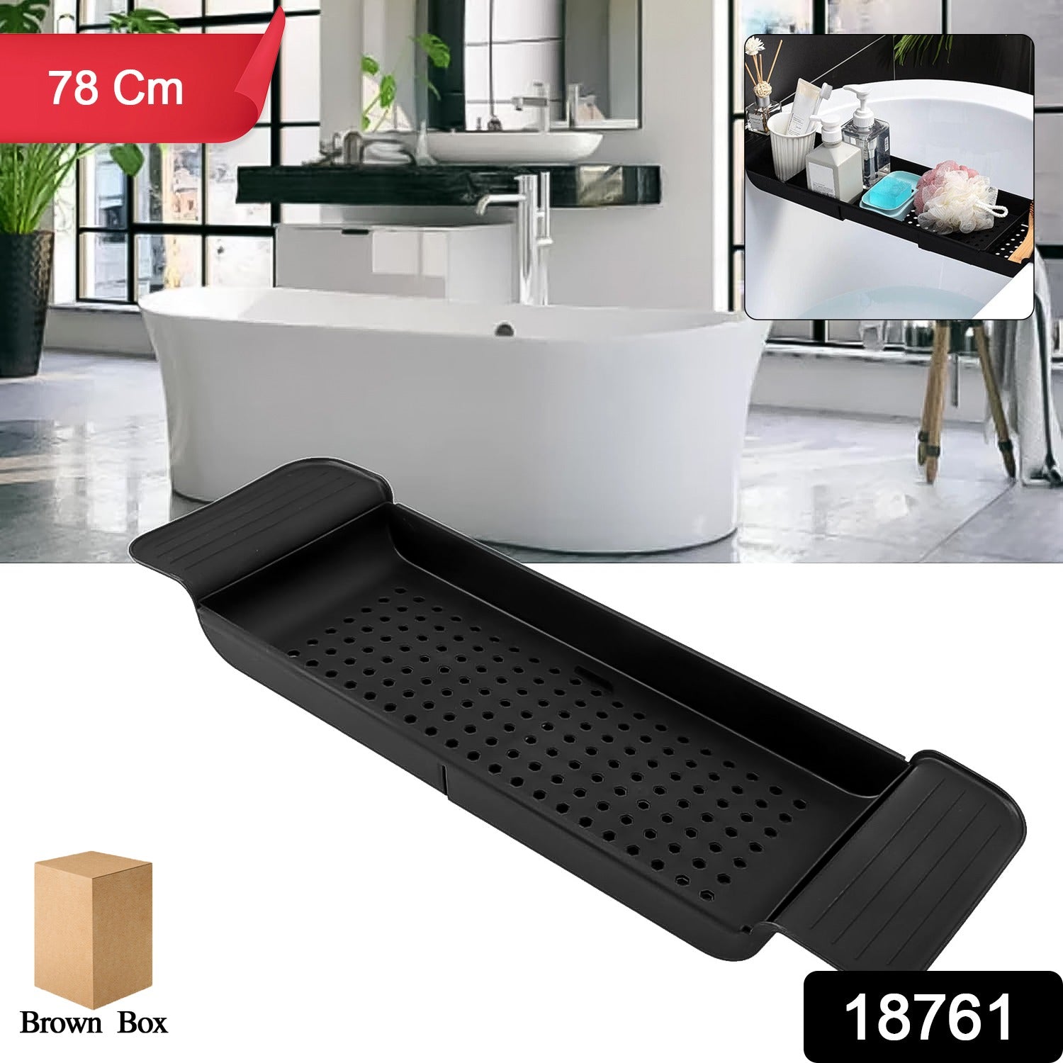 Retractable Bath Caddy Tray Bathtub Tray Retractable Bathtub Toy Holder Bath Tub Rack Bathtub Shelf Bathtub Storage Rack Book Holder Candlestick Handle Dish Drain Rack (78 Cm Long Adjust / 1 Pc / With Brown Box)