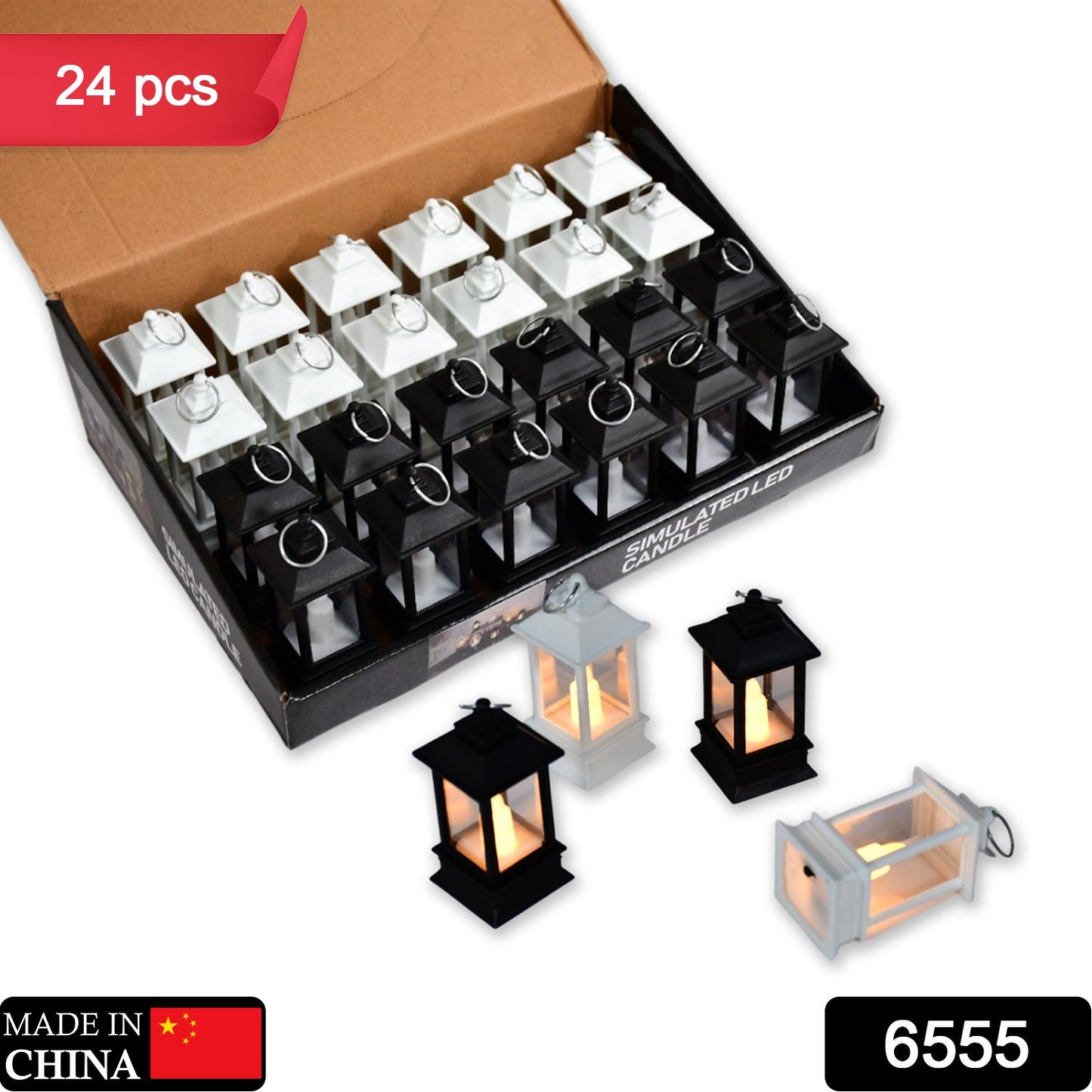 6555 Classic Style Lantern With Artificial Rustic Battery-Operated Flameless Candlelight For Home Decoration - Good For Indoor & Outdoor Use (Pack of 24)